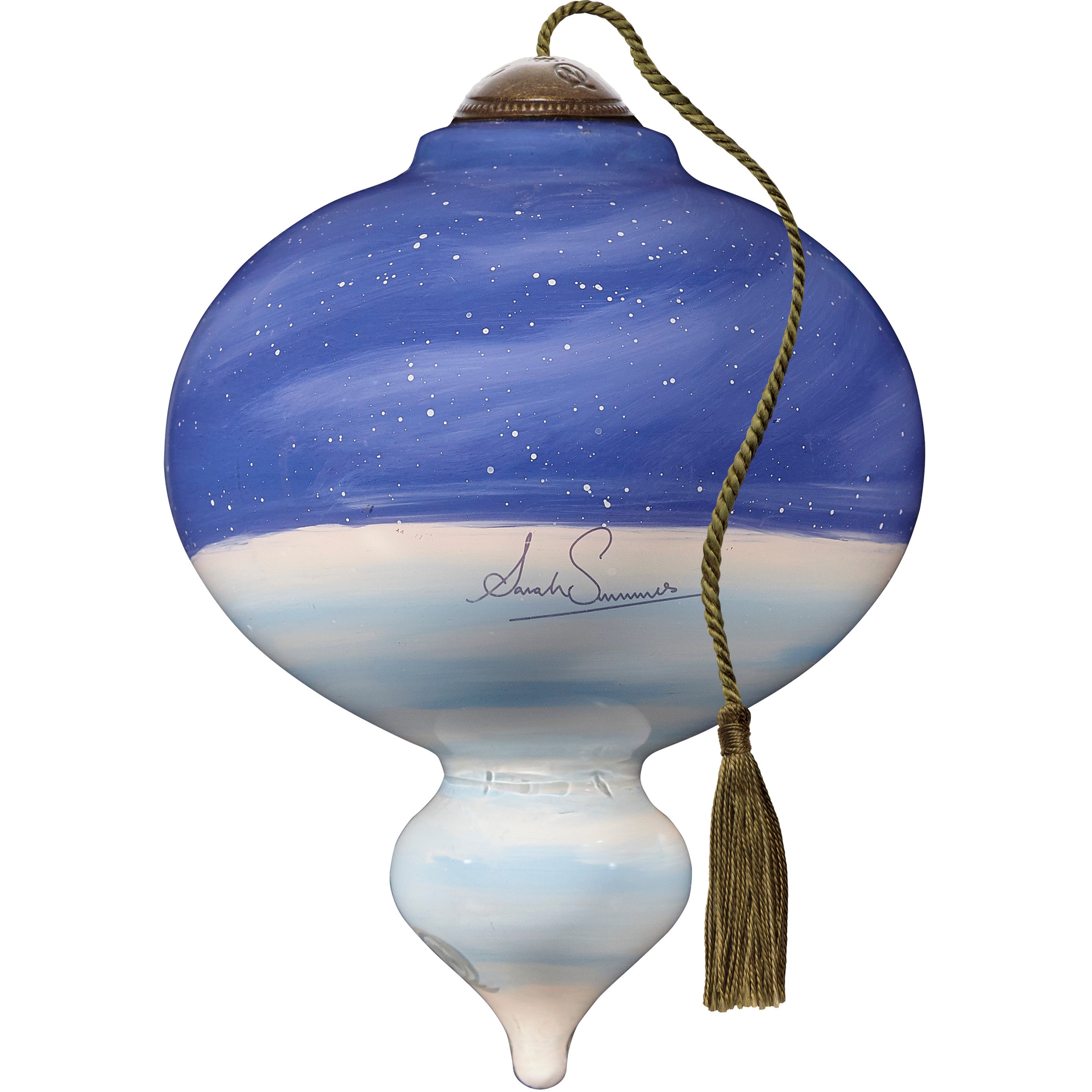 Of all the holiday traditions, the festive musical sounds are some of the most memorable. Carols, drums, and trumpets all help to make the season bright. This ornament features a trio of angels proclaiming the arrival of the newborn king with their shiny brass instruments. They gracefully fly above a wintry scene in robes of joyful colors. Inspired by the artwork of Sarah Summers, Ne’Qwa Art® artisans re-create her unique scene from the first Christmas on an ornament that will be treasured every holiday season to come. It includes a Certificate of Authenticity and is beautifully packaged in a satin-lined, keepsake gift box for an unforgettable Christmas present. This ornament is a thoughtful Christmas gift for friends, family, co-workers, musicians, or anyone who celebrates the true meaning of Christmas. It also makes a special housewarming gift or holiday hostess gift. An adjustable tasseled cord allows for display on a Christmas tree or a Ne’Qwa Art® ornament stand. It measures approximately 5.5”H, Standard Marquis shape. All genuine Ne’Qwa Art® ornaments and gifts are created with the ancient technique of hand-painting original art on the inside of mouth-blown glass. With meticulous attention to every detail, trained artisans use specially designed paintbrushes to re-create stunning works of original art. Make memories to treasure for a lifetime with authentic Ne’Qwa Art® glass ornaments and gifts.