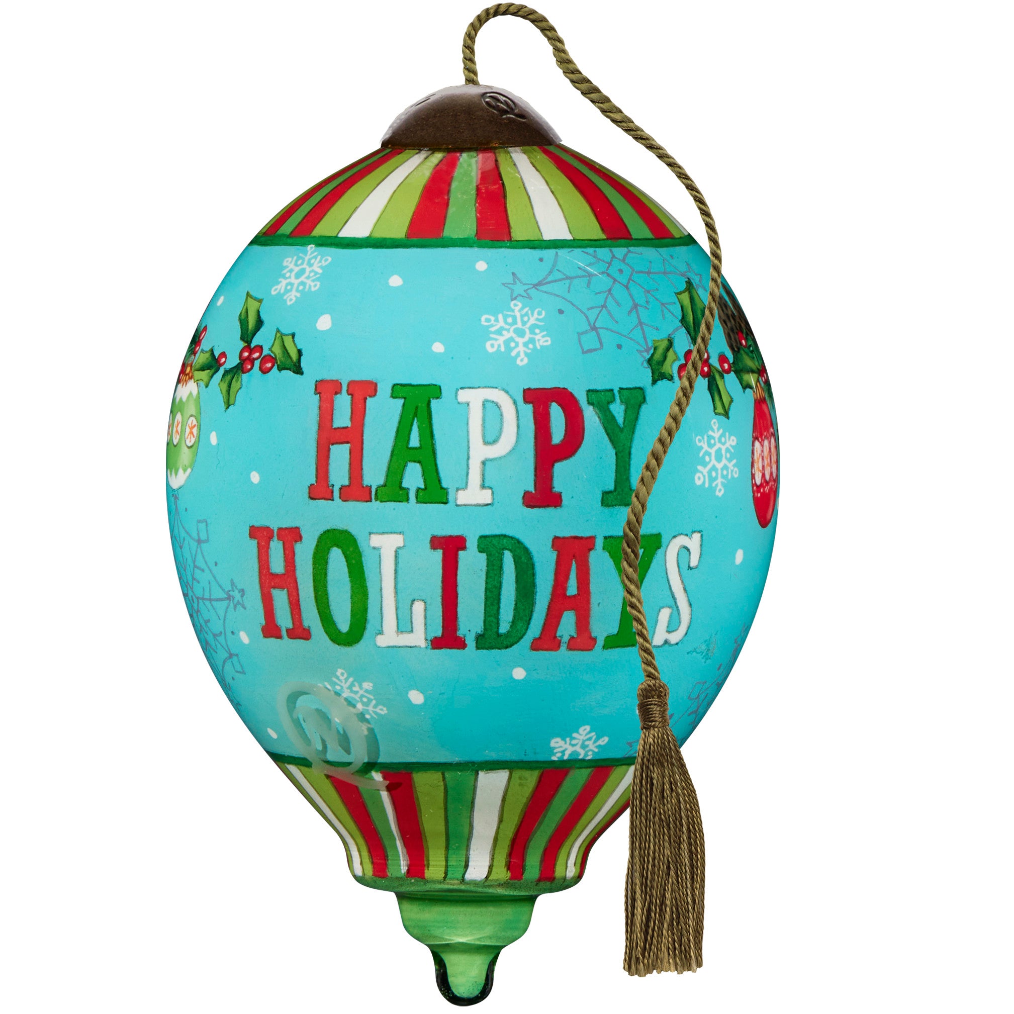 Bright and fun colors help to make the season merry. So very festive, a scarlet cardinal perches on a bough decorated for Christmas as the snowflakes gently fall. “Happy Holidays” is on the reverse side to really set the Christmas mood. Inspired by the cheerful artwork of Helz Cuppleditch, Ne’Qwa Art® artisans re-create the colorful scene for an unforgettable ornament. This item includes a Certificate of Authenticity and is beautifully packaged in a satin-lined, keepsake gift box. This ornament is a perfect holiday gift for friends, family, coworkers, or anyone who loves colorful Christmas décor. It also makes a thoughtful hostess gift or housewarming present. An adjustable tasseled cord allows for display on a Christmas tree or a Ne’Qwa Art® ornament stand. This hand-painted glass ornament measures approximately 3”H, Petite Princess shape. All genuine Ne’Qwa Art® ornaments and gifts are created with the ancient technique of hand-painting original art on the inside of mouth-blown glass. With meticulous attention to every detail, trained artisans use specially designed paintbrushes to re-create stunning works of original art. Make memories to treasure for a lifetime with authentic Ne’Qwa Art® glass ornaments and gifts.