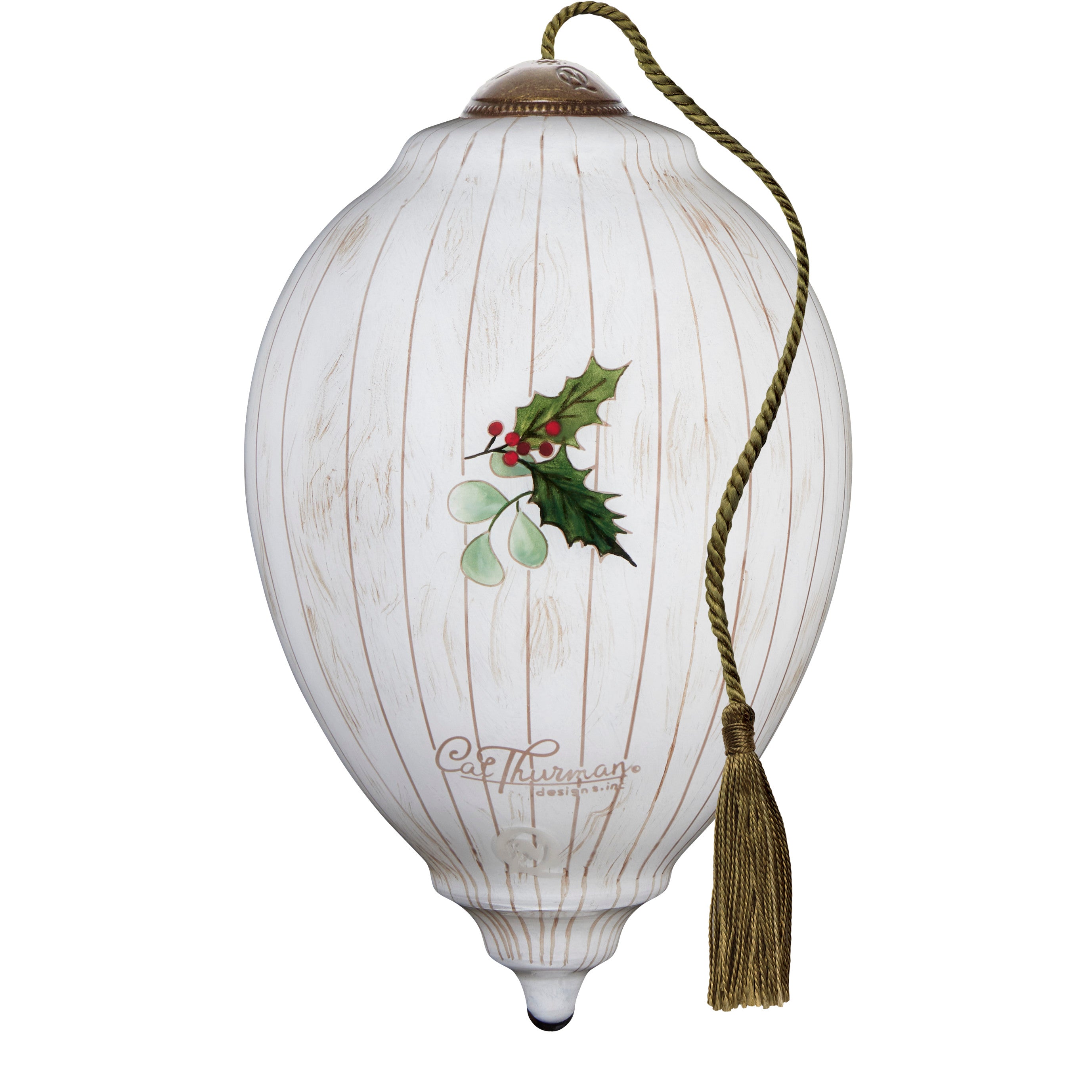 Even the cardinals know that this is a season for togetherness! This stunning ornament features a charming cardinal couple sharing a branch surrounded by festive winter foliage. A wood-grain background gives it a distinctly cozy country feel. Inspired by the detailed artwork of Cat Thurman, Ne'Qwa Art artisans re-create her holiday scene. Includes a signed Certificate of Authenticity. Beautifully packaged in a satin-lined, keepsake gift box, this ornament is a perfect holiday gift for friends, family, coworkers, or anyone who loves nature-inspired Christmas décor. It also makes a thoughtful hostess gift, housewarming present or Secret Santa gift for a birdwatcher or nature lover on your list. An adjustable tasseled cord allows for display on a Christmas tree or a stand. Measures approximately 5.75""H, Standard Princess shape.