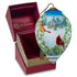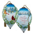 The contrast of red feathers against white snow is one of unquestionable beauty. This ornament features a handsome cardinal couple perched upon snow covered evergreens, admiring the quaint view of the country church behind them. “Let Heaven And Nature Sing” appears on the reverse side. Inspired by the endearing artwork of Kathy Goff, Ne’Qwa Art® artisans re-create her festive scene on this generously-sized ornament. This item includes a Certificate of Authenticity and is beautifully packaged in a satin-lined, keepsake gift box. This ornament is a perfect holiday gift for friends, family, coworkers, or anyone who loves watching for cardinals on a snowy day. It also makes a thoughtful holiday hostess gift or housewarming present. An adjustable tasseled cord allows for display on a Christmas tree or a Ne’Qwa Art® ornament stand. This hand-painted glass ornament measures approximately 5.5”H, Standard Princess shape. All genuine Ne’Qwa Art® ornaments and gifts are created with the ancient technique of hand-painting original art on the inside of mouth-blown glass. With meticulous attention to every detail, trained artisans use specially designed paintbrushes to re-create stunning works of original art. Make memories to treasure for a lifetime with authentic Ne’Qwa Art® glass ornaments and gifts.