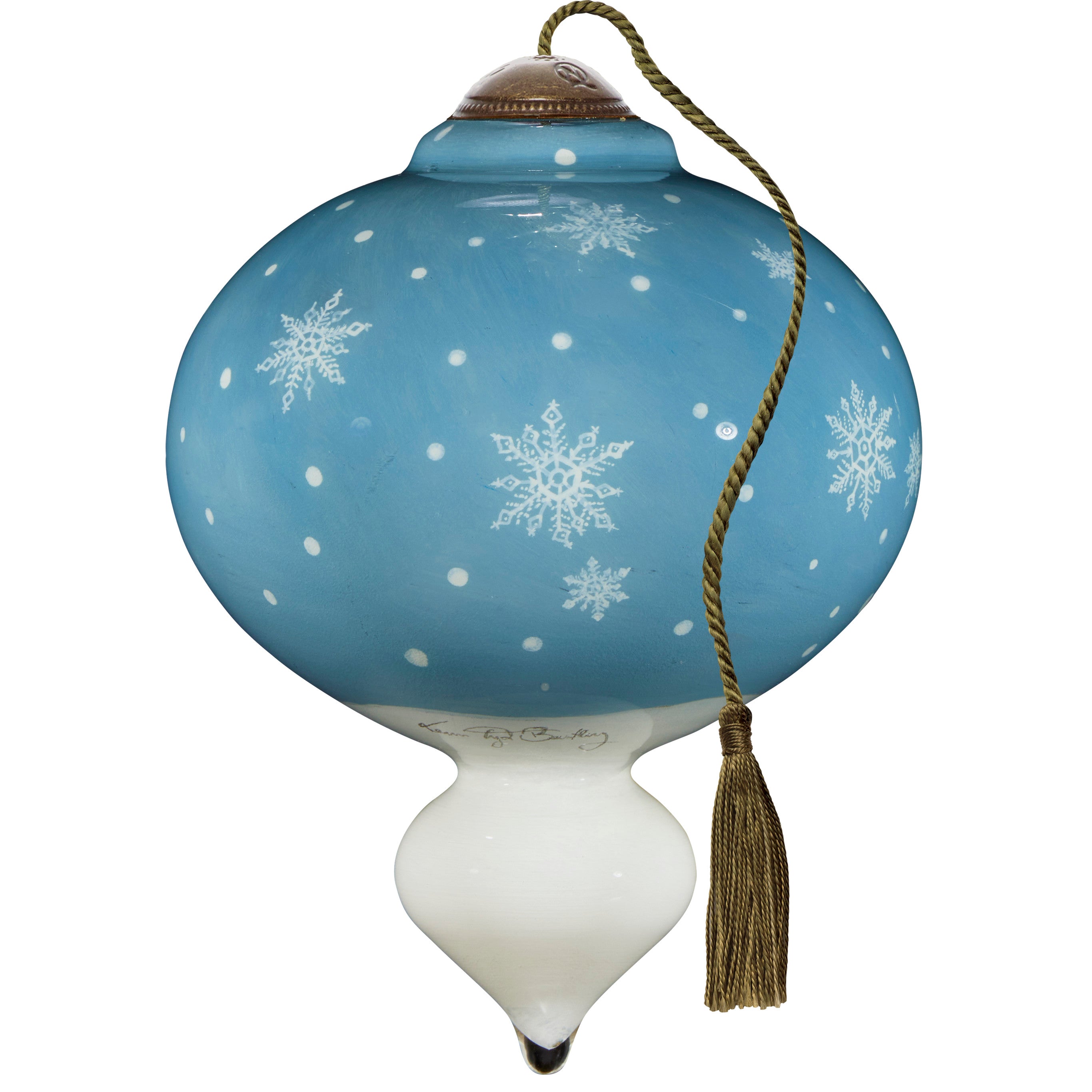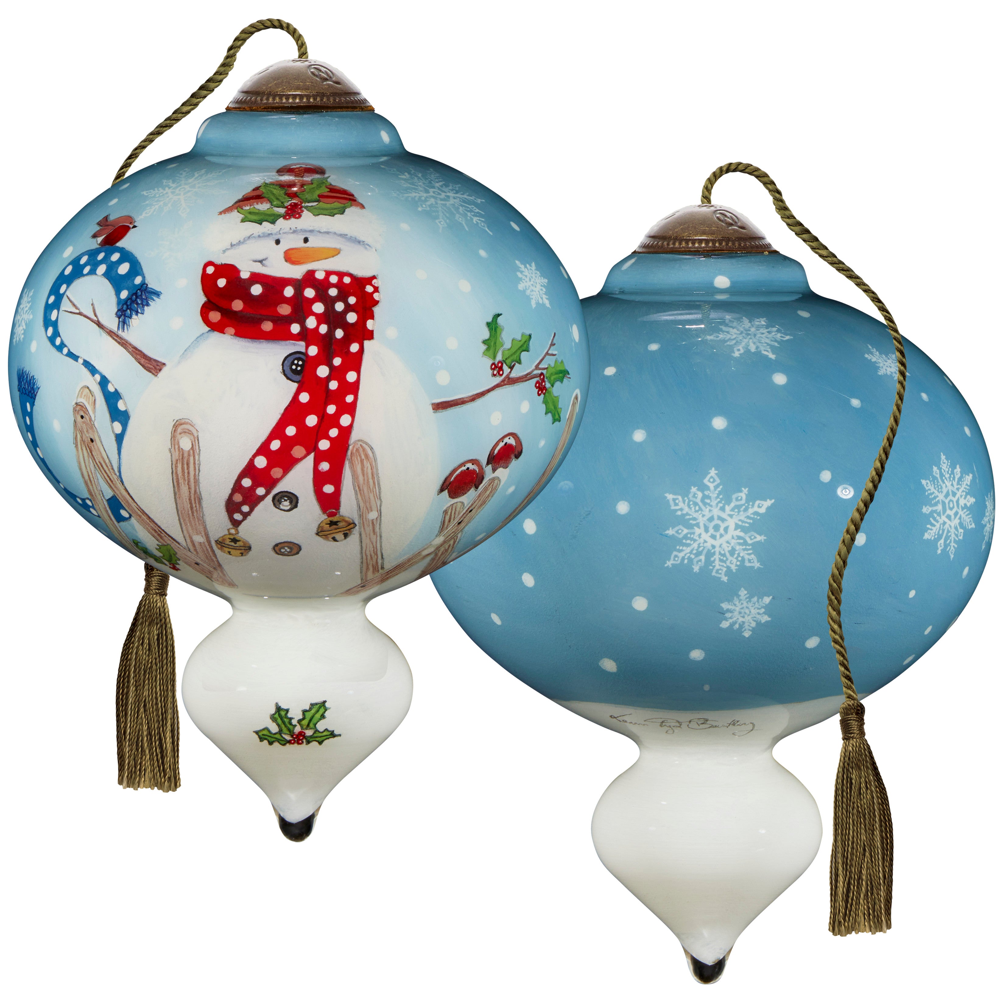 Playing in the snow is a fun like no other. In his happy place, this smiling snowman is adorned with sprigs of holly, polka-dot scarves, and jingle bells. A friendly bird joins in his enthusiasm for the fresh snowfall. Inspired by the whimsical artwork of Karen Tye Bentley, Ne’Qwa Art® artisans re-create her merry winter scene. This ornament includes a Certificate of Authenticity and is beautifully packaged in a satin-lined, keepsake gift box. This ornament is a perfect holiday gift for friends, family, coworkers, teachers, or anyone who loves snowmen and playing in the snow! It makes a thoughtful hostess gift or housewarming gift, too. An adjustable tasseled cord allows for display on a Christmas tree or a Ne’Qwa Art® ornament stand. This hand-painted glass ornament measures approximately 5.5”H, Standard Marquis shape. All genuine Ne’Qwa Art® ornaments and gifts are created with the ancient technique of hand-painting original art on the inside of mouth-blown glass. With meticulous attention to every detail, trained artisans use specially designed paintbrushes to re-create stunning works of original art. Make memories to treasure for a lifetime with authentic Ne’Qwa Art® glass ornaments and gifts.