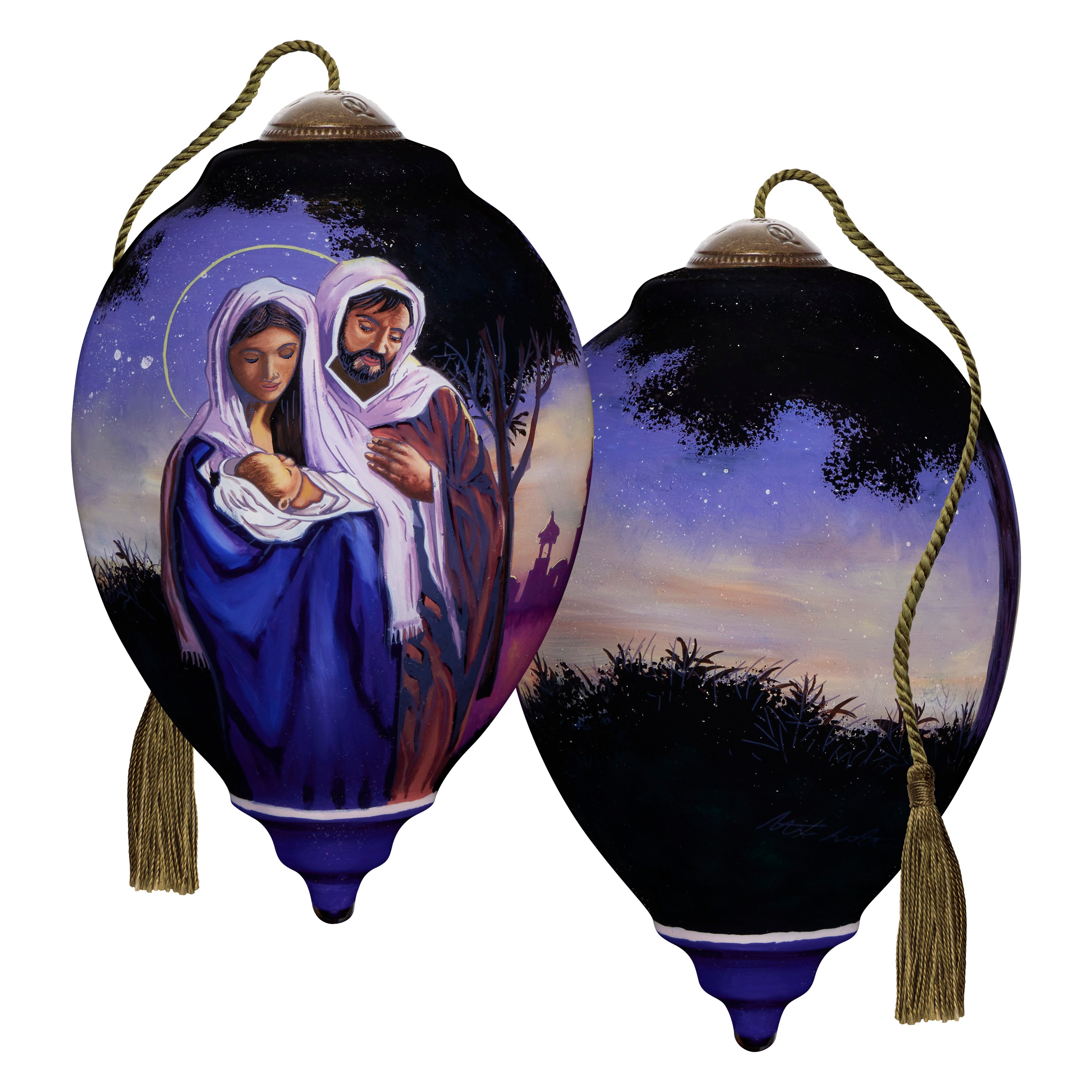 While there is a lot of hustle and bustle this time of year, the true splendor lies in the quiet beautiful moments we can reflect on the wonder at the heart of it all. Behold the tender instant Mary and Joseph first gaze upon the tiny miracle they have ushered into the world. Inspired by the inspirational artwork of Alan Lathwell, Ne'Qwa Art artisans re-create the touching scene. Includes a Certificate of Authenticity. Beautifully packaged in a satin-lined, keepsake gift box, this ornament is a perfect holiday gift for friends, family, coworkers, or anyone who understands the significance of the that First Noel. Makes a stunning housewarming gift, hostess gift, or Secret Santa present. This ornament has an adjustable tasseled cord which allows for display on a Christmas tree or a stand. Measures approximately 5.75""H, Standard Princess shape.